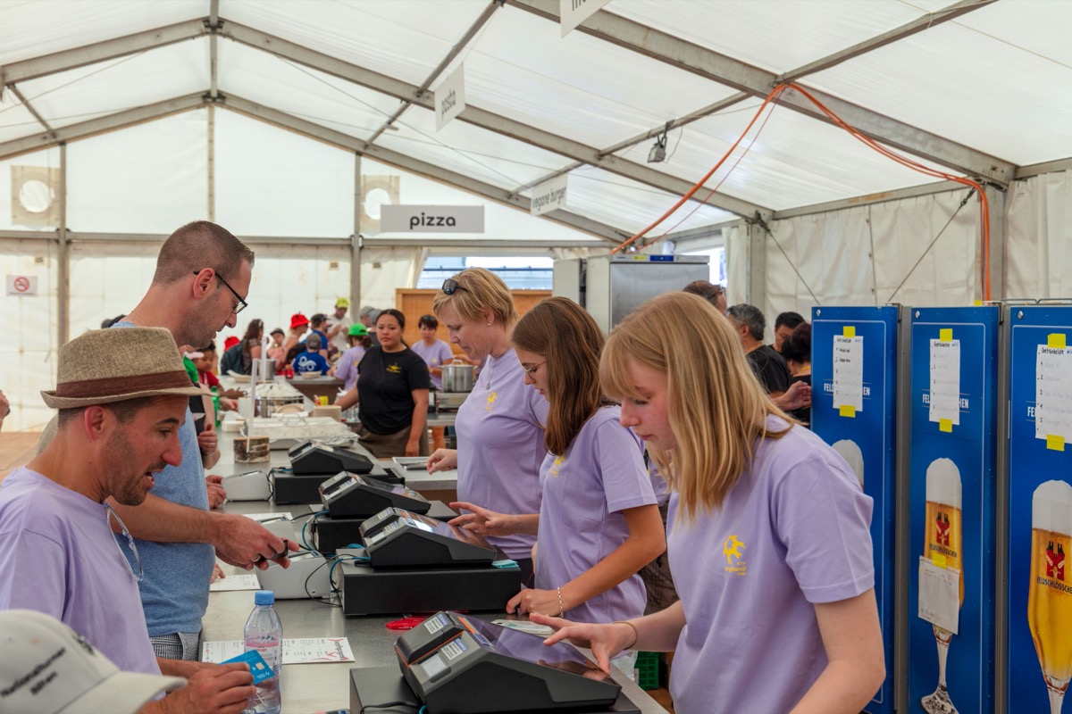 Noch weiter gingen andere Helfende, die ganze Ferienwochen oder gar unbezahlte Urlaube fürs KTF Wyland genommen haben. «Ich habe sowieso eine viermonatige Auszeit vom Job geplant», sagt etwa eine Frau, die im Wipf’s Alpenblick tätig ist. Nun arbeite sie sechs Wochen davon fürs Zürcher Kantonalturnfest. Immer montags und freitags war sie im Vorfeld bei der Helferverpflegung im Lokal tätig. An den Festwochenenden selbst sei sie im Alpenblick überall dort, wo «Not am Mann oder der Frau sei». Etwa bei der Einarbeitung der Helfenden, die mit vier Stunden eher kurze Schichten und häufige Wechsel hätten.
